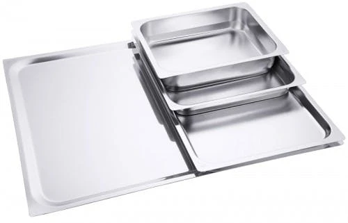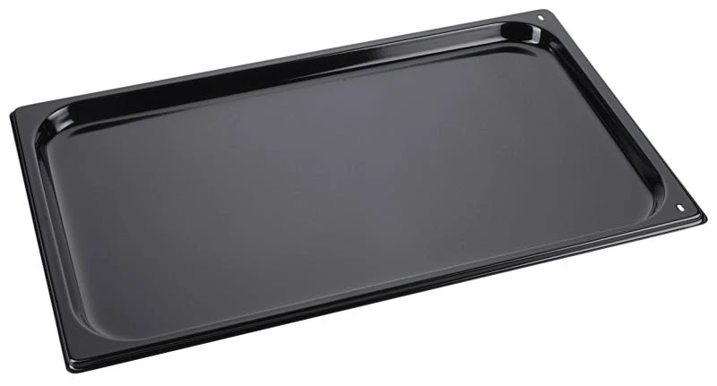 2x GN-Konvektomatenblech aus Stahlblech, beidseitig beschichtet mit schwarzer Granit-Emaille, in zwei Ecken gelocht, schwere Qualität Tiefe: 2 cm, GN: 1/1