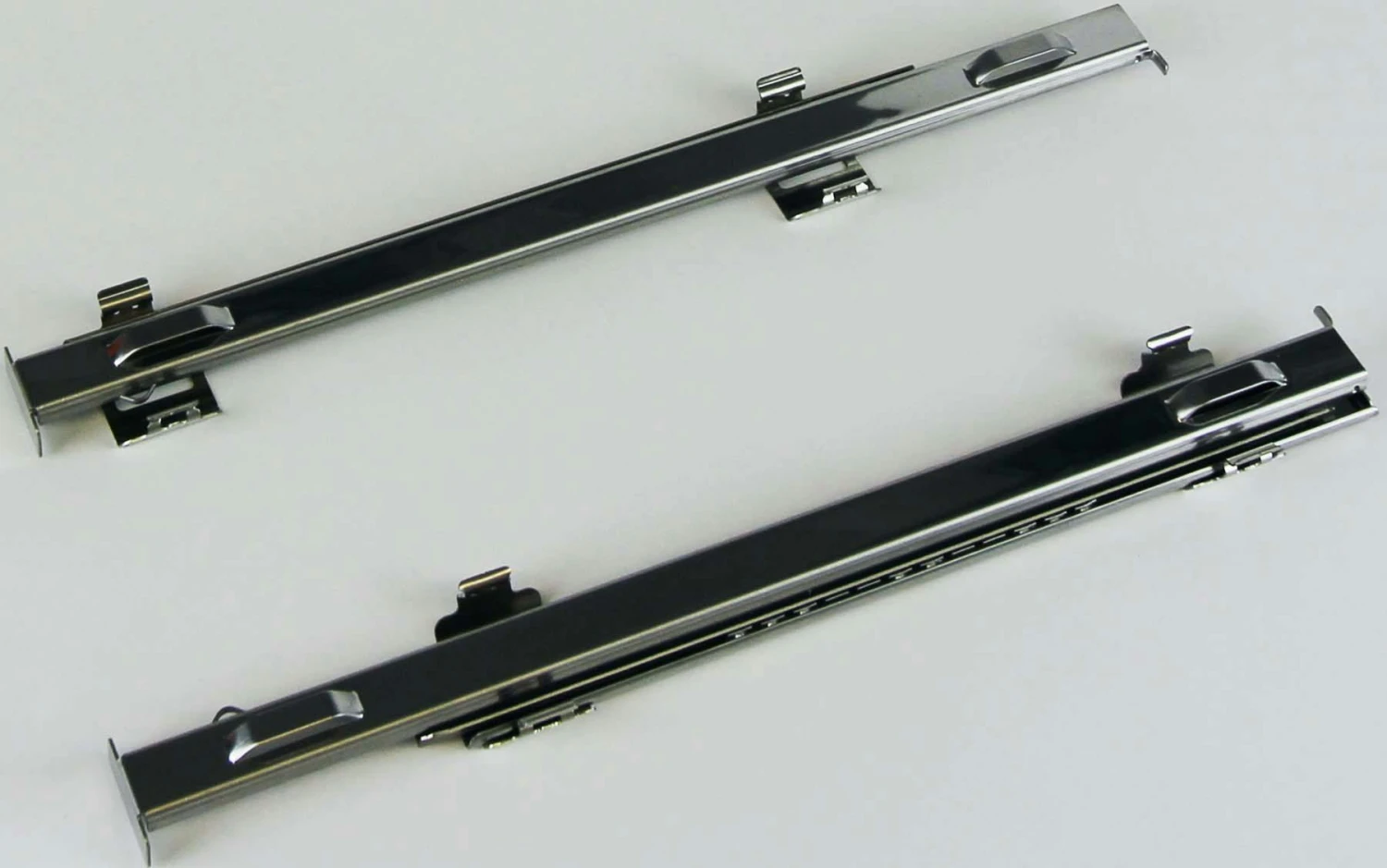 1 Paar Teleskop-Auszugsschienen (L/R) für Herde und Backöfen ohne Dampfgarfunktion, Teilauszug, sicherer Auszugskomfort für Backbleche und Grillroste, nachrüstbar für alle Herd- oder Backofen-Modelle, die über stabile Seitengitter aus glänzendem Edelstahl verfügen