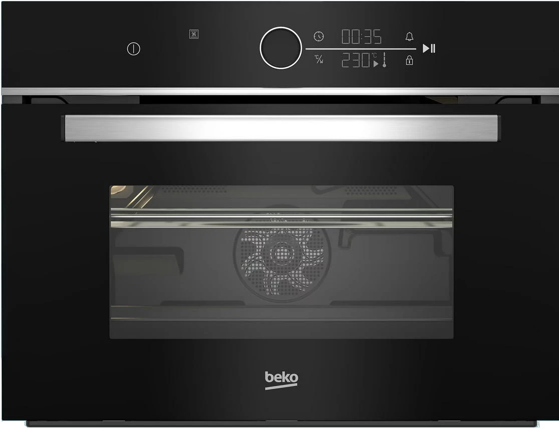 Beko Kompaktbackofen mit Mikrowellen – Funkion / 3D Kochen / schwarz mit Display / 16 Funktionen
