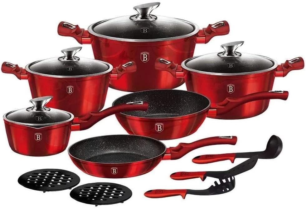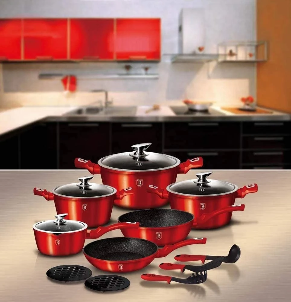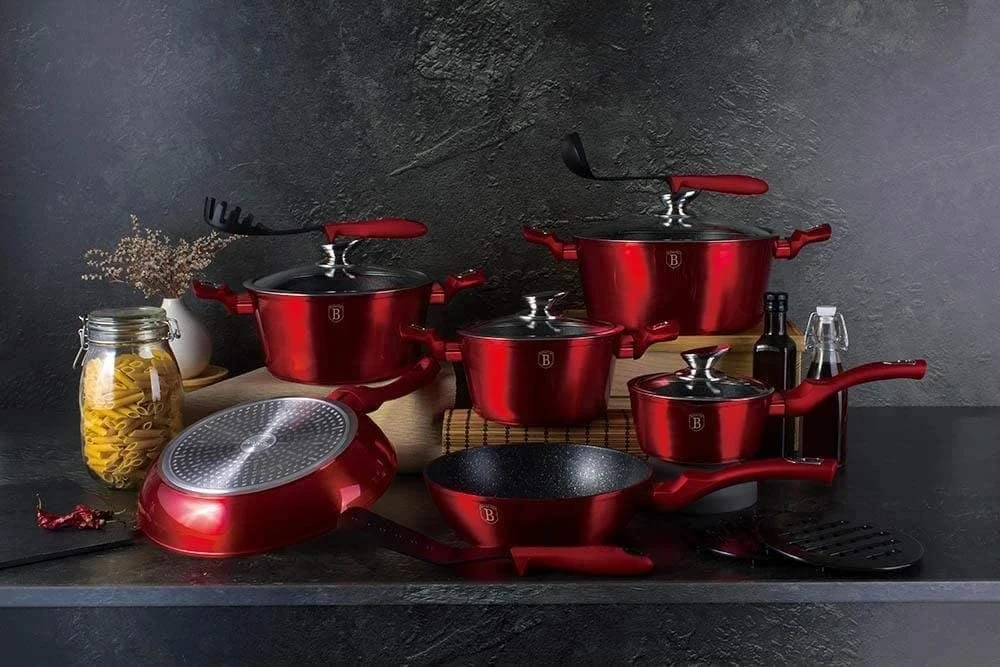 BERLINGER HAUS: 15 teiliges Kochgeschirr-Set in burgunderrot