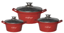 Die Produktionstechnologie basiert auf dem innovativen dynamischen Impact -System – Impact Bonding, was bedeutet, dass die Dreischichtbeschichtung, die in jedem professionellen Schiff als Boden dient, durch die Auswirkungsmethode unter Druck von 2.500 Tonnen hergestellt wird. Der geschmiedete thermische Boden hat einen speziell profilierten Boden, der unter dem Einfluss der Temperatur seine Form in eine perfekt flache ändert, was bedeutet, dass sie selbst bei sehr hohen Temperaturen die Fähigkeit beibehält, gleichmäßig zu kochen und zu braten. Am Boden des Gefäßes zwischen zwei Schichten von Crni -Säurestahl befindet sich eine Aluminiumschicht mit einer Dicke von fast 10 mm, abhängig von der Größe (CRNI -Stahl von 0,7 mm + Al 8,0 mm + CRNI 1,2 mm Stahl). Das verwendete Material ist durch eine geringe Oberflächenporosität gekennzeichnet, die eine einfache Reinigung gewährleistet, ist durch einen außergewöhnlichen Widerstand gegen Schäden gekennzeichnet und reagiert gleichzeitig nicht mit Nahrung und schützt es vor den Auswirkungen von Säuren. Der Boden behält Wärme bei, verteilt aber auch schnell und gleichmäßig Wärme, was etwa 60% der Energie im Vergleich zu Töpfen spart, die mit gewöhnlicher Löttechnologie hergestellt werden.