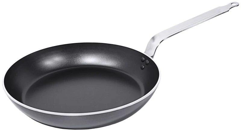 Antihaft-Bratpfanne, aus Aluminium, mit PTFE-Beschichtung, plangedrehter Boden, flacher dreifach vernieteter Eisengriff, nicht induktionsgeeignet