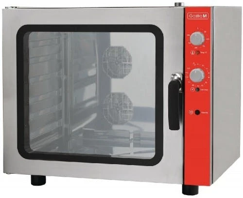 6,3kW/400V | Kapazität: 4 x 60x40cm-Pfanne Konvektionsofen geeignet für 4x 600x400mm Roste und/oder Backbleche. Benutzterfreundlich durch ein einfaches Bedienfeld. Ausgestattet mit Thermostat 300°C und Zeitschaltuhr. Der Konvektionsofen ist ausgestattet mit 2 Ventilatoren. Innen- und Außenseite aus Edelstahl AISI304. Aussgestattet mit doppelt verglaster Klapptür. Mit Umbauzubehör PT4 1/1 einfach anzupassen an 1/1 Gastronorm, Artikelnummer GR210. Dieser Ofen benötigt einen festen Wasseranschluß.