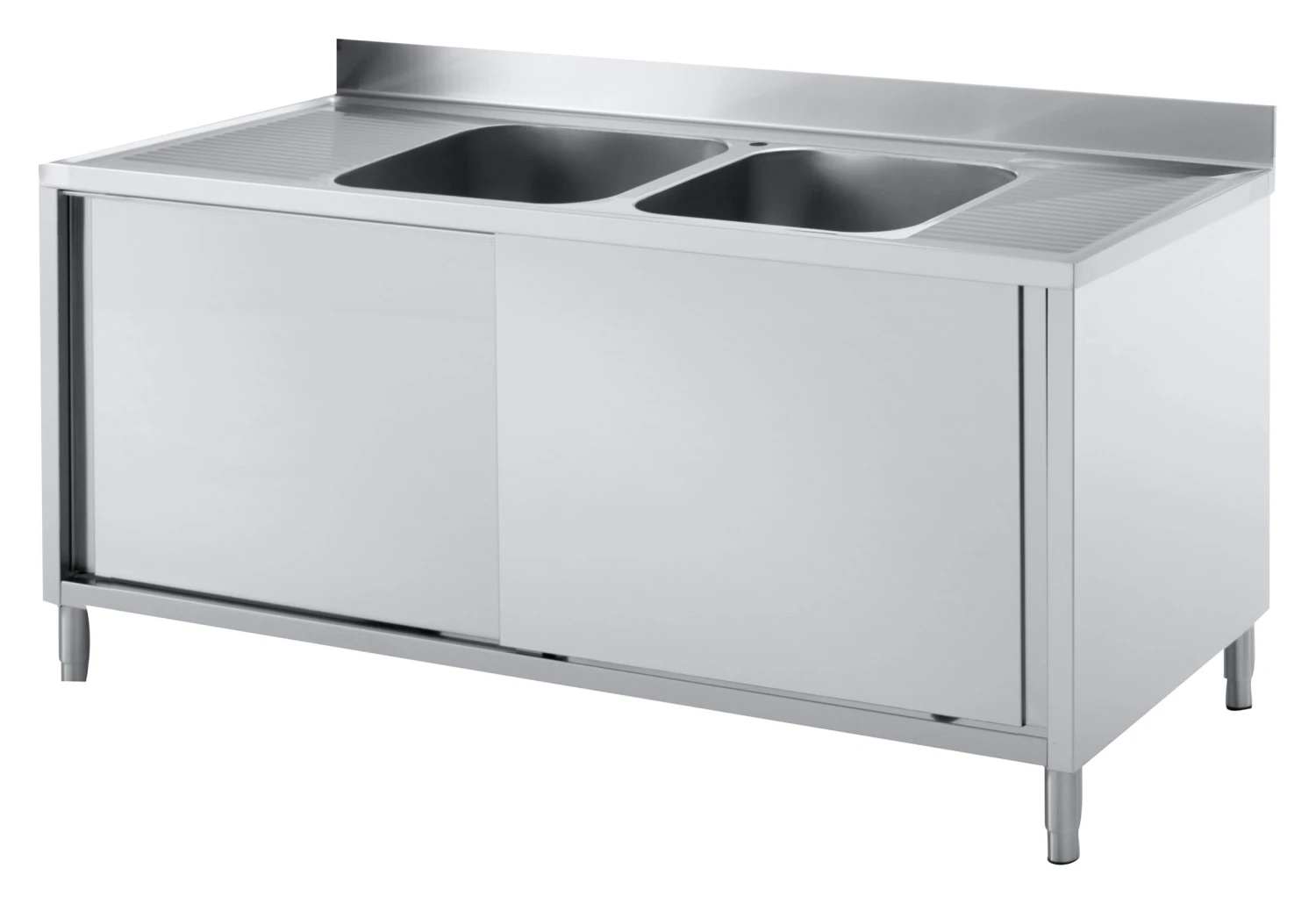 Spülschrank aus Edelstahl, Bautiefe 700mm,