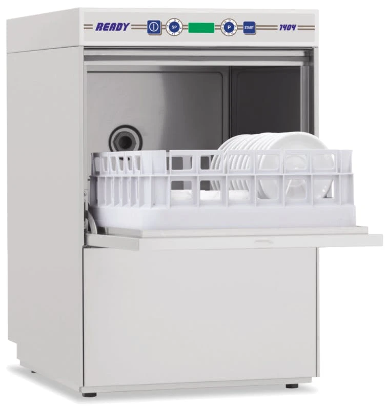 Die elektronische Gewerbespülmaschine Ready 1404 AP ist eine kompakte Gläserspülmaschine die eine große Erleichterung im Arbeitsalltag bietet. Der eingebaute Türkontaktschalter stoppt die Maschine bei einer Öffnung während des laufenden Betriebes. Mit der doppelwandigen Tür wird die Geräuschentwicklung des Gläserspülers auf das minimalste reduziert. Eine zusätzliche Dichtlippe verhindert einen Dampfaustritt beim Spülen. Außen und Innen aus Chromnickelstahl CNS gefertigt, serienmäßig mit Boilersicherheitsthermostat zum Schutz vor Überhitzung erhalten Sie ein höchstmaß an Sicherheit. Servicefreundliche und ohne Werkzeug wechselbare Wascharme, Nachspülarme und Düsen reduzieren die Wartungskosten auf das minimalste. Ausgestattet mit Nachspülmitteldosiergerät, Reinigerdosiergerät und Laugenpumpe bietet Ihnen unsere Gläserspülmaschine optimalen Komfort. Die abgerundeten Ecken in der schräg verlaufenden Wanne sorgen für ein höchstmaß an Hygiene und gewährleisten eine optimale Innenreinigung. Als Serienzubehör wird unsere Gläserspülmaschine mit 1 Neutralkorb, 1 Gläserkorb aus Draht und 1 Besteckkorb ausgeliefert.