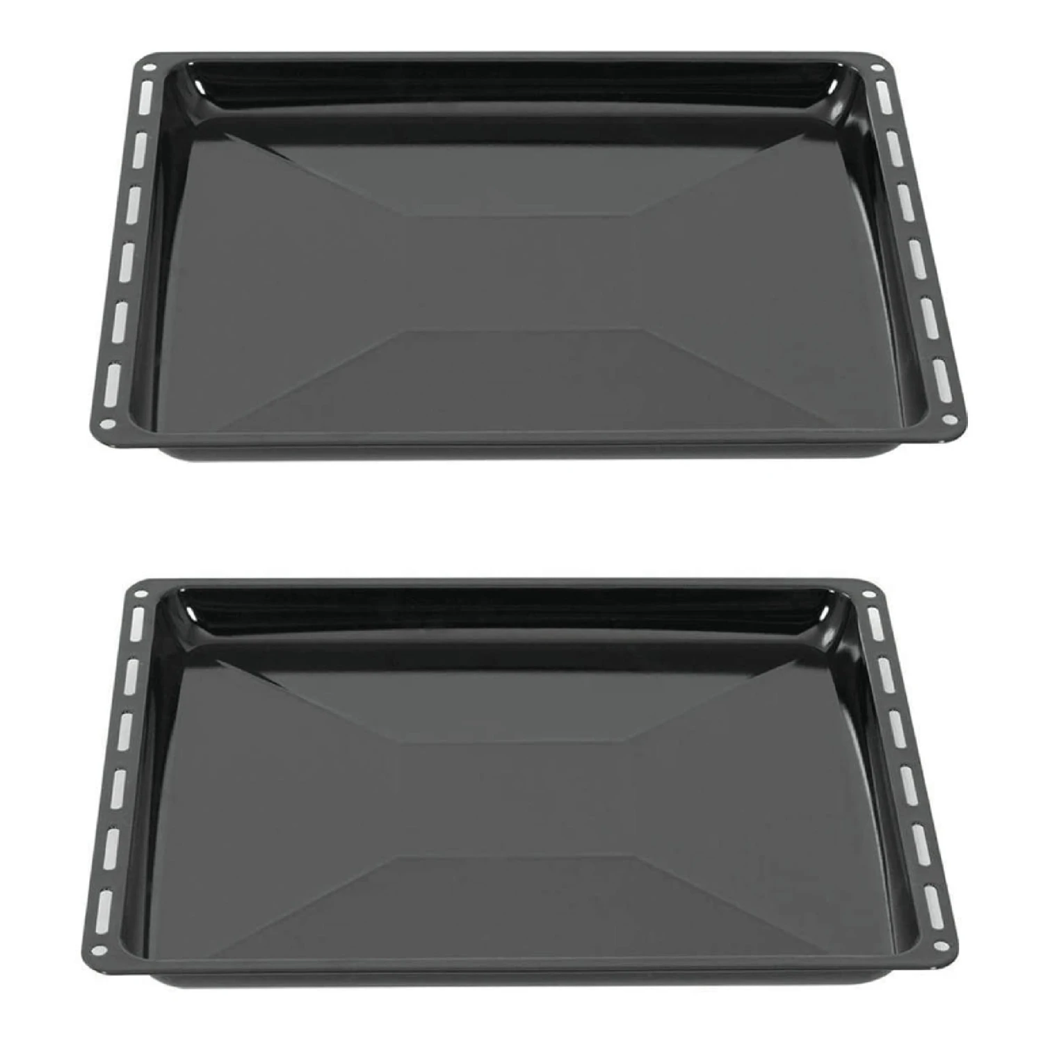 ICQN 460 x 375 x 30 mm Backblech Set | Passend für Bosch Siemens Neff Constructa Beko | 2er Emaillierte Fettpfanne für Backofen | Kratzfest & Rosfrei | 460 x 37 cm