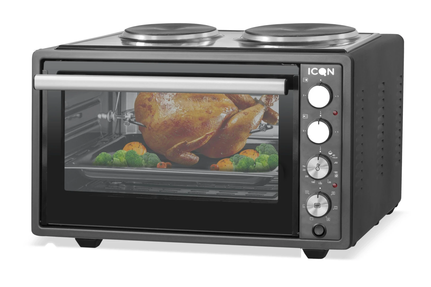 - 1x Backblech 1x Grill 1x Drehspieß 1x Griffzange für Backbleche als Zubehör. WICHTIG WARNUNG: Bei Fragen zu den Außenmaßen des Mini-Backofens kontaktieren Sie bitte uns, um gemeinsam zu überprüfen, ob der Mini-Backofen für Ihre Küche oder Abstellplatz geeignet ist. Vielen Dank