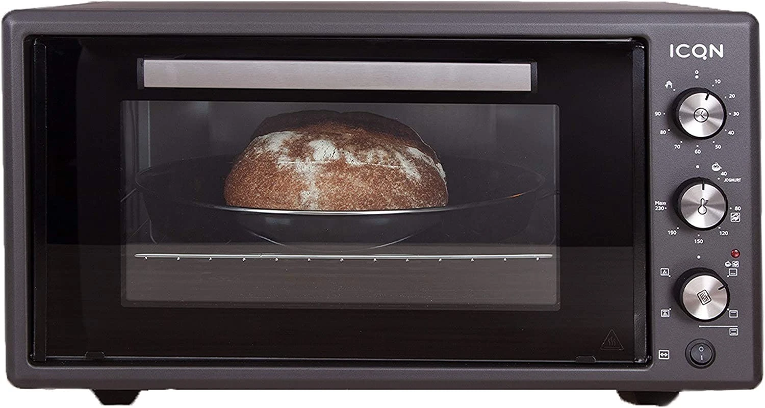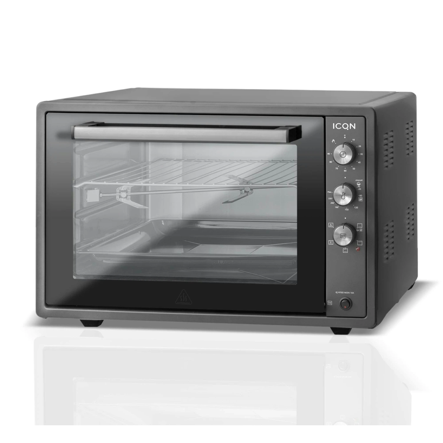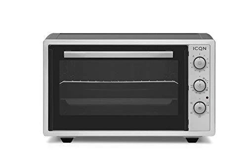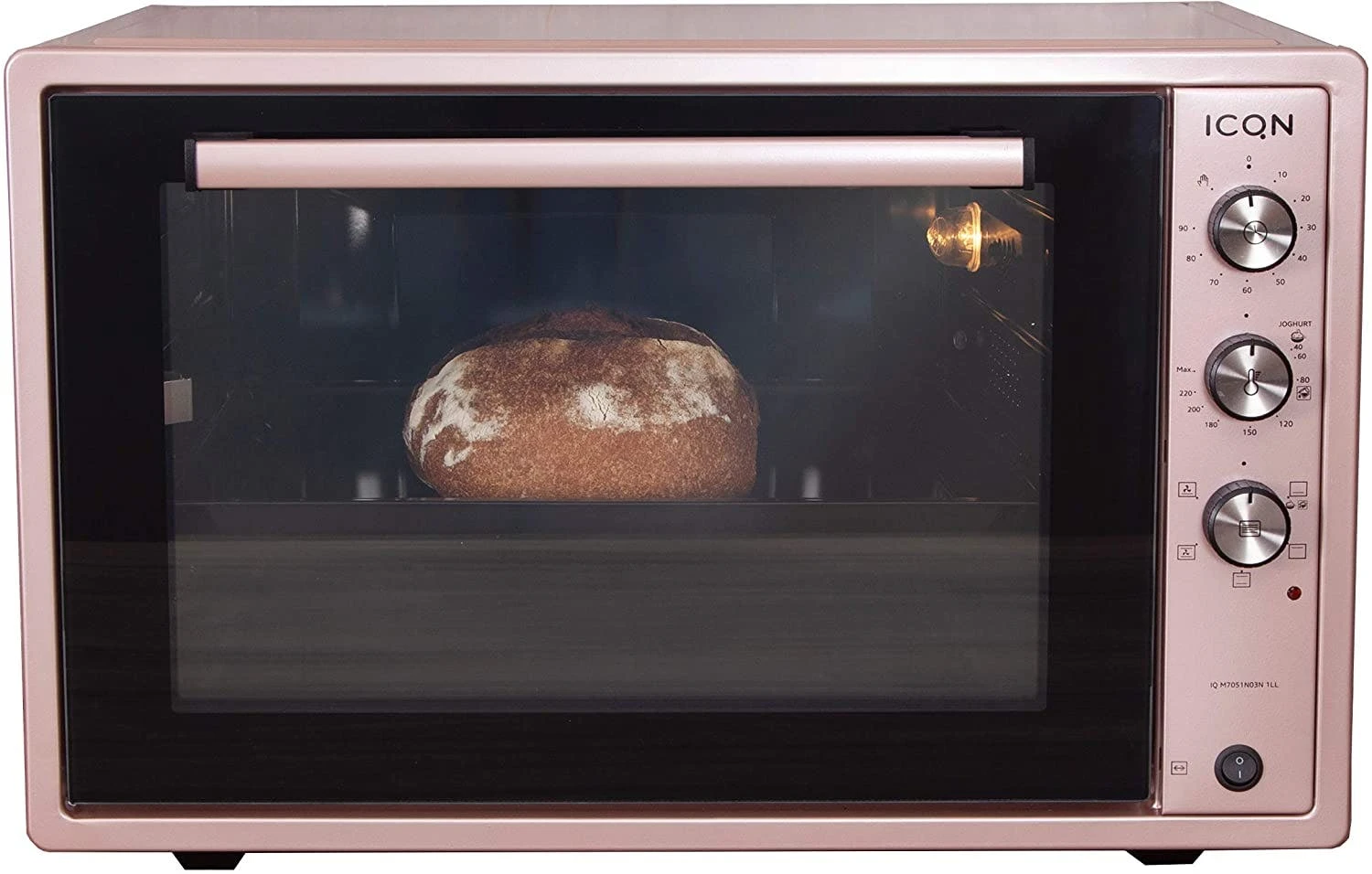 ICQN 60XXL Mini-Öfen | 1800 W | Mini-Backofen mit Innenbeleuchtung und Umluft | Pizza-Ofen | Doppelverglasung | Drehspieß | Timer Funktion | Emailliert | Inkl. Schürze | Rosé