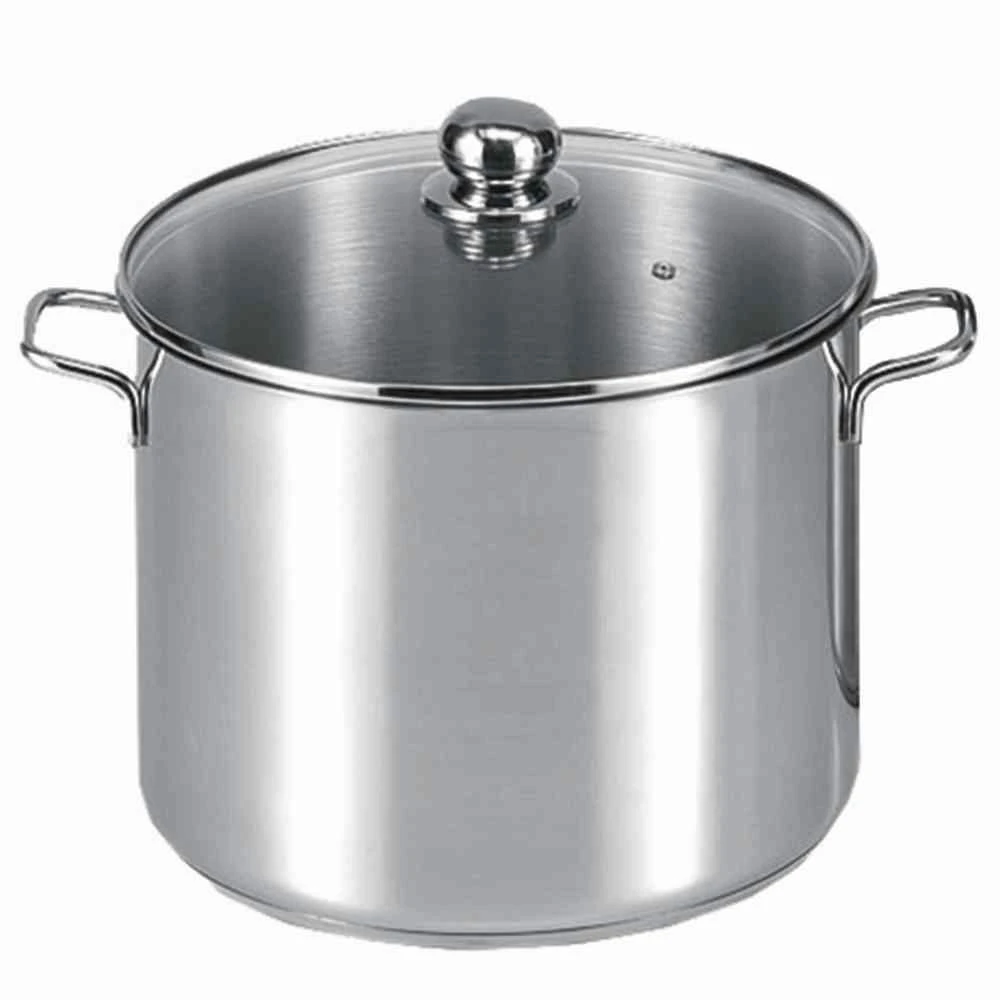 - hitzebeständiger Glasdeckel mit Chromrand zum Sichtkochen mit Dampfaustrittsloch