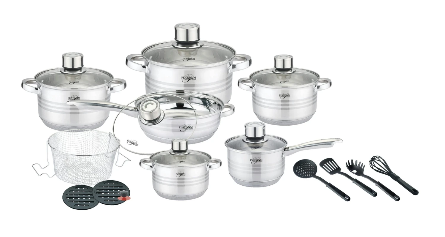 18 teilig Edelstahl Kochgeschirr Induktion Kochtopf Topfset Glasdeckel