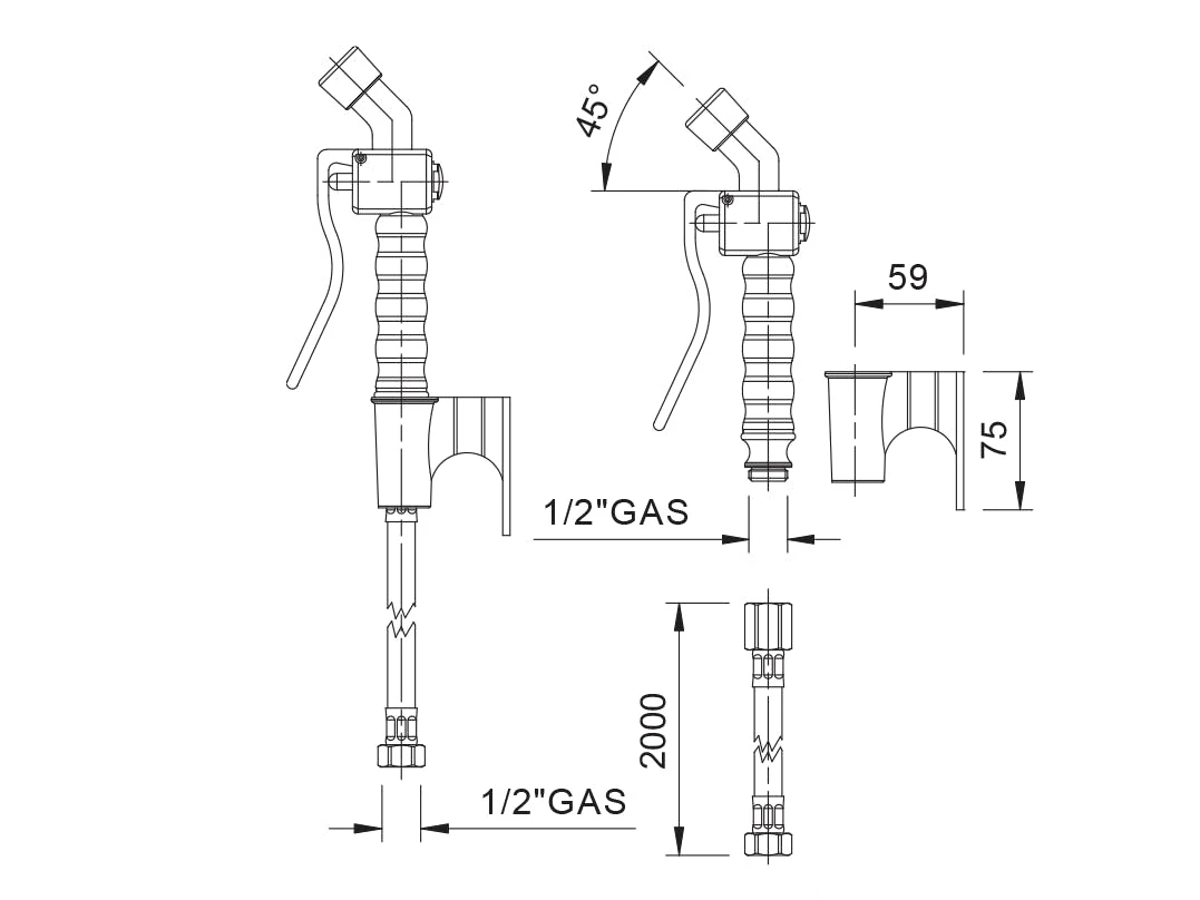 Premium-Ofenbrause mit Hebelbedienung; Brausenkopf mit besonders großem, chromatiertem Hebel; 2 m Schlauch 1/2 Zoll inkl. Schlauchhalterung; (Weitere Abmessungen entnehmen Sie bitte der technischen Zeichnung)