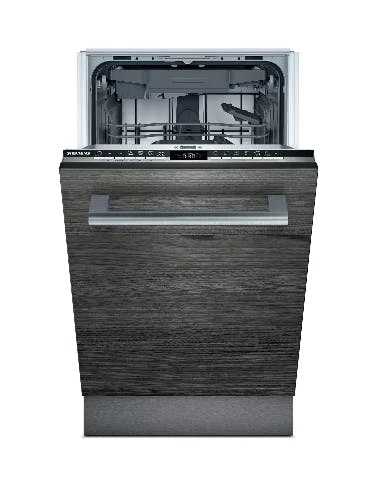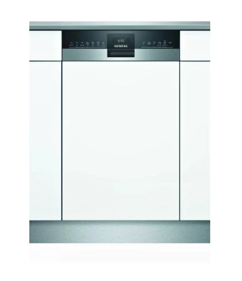 Siemens iQ300 SR53HS76ME. Geräteplatzierung: Halb integriert, Produktgröße: Single (45 cm breit), Bedienfeld Farbe: Schwarz. Anzahl Maßgedecke: 10 Maßgedecke, Lärmemissionsklasse: B, Geräuschpegel: 44 dB. Control Apps werden unterstützt: Siemens Home Connect. Energieeffizienzklasse: E, Wasserverbrauch pro Zyklus: 9,5 l, Energieverbrauch für 100 Zyklen: 76 kWh. Breite: 448 mm, Tiefe: 573 mm, Höhe: 815 mm