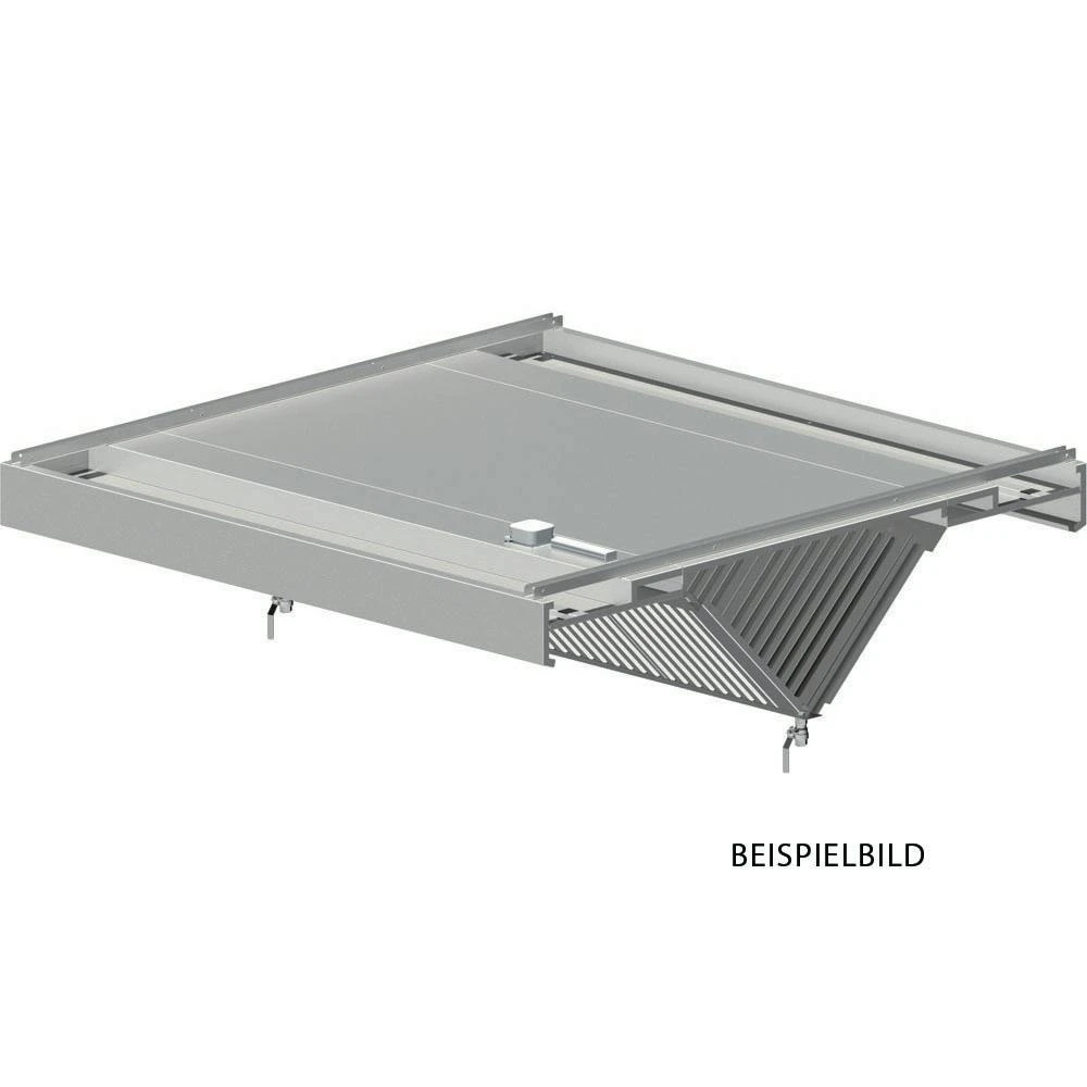 Die Deckenhaube „Basic Line“ filtert zuverlässig Schmutz und Fettteilchen aus der Luft. Über die innenliegenden Rinnen werden Kondensat und Fett gesammelt und können von Ihnen leicht und hygienisch mit Hilfe der seitlich angebrachten Kugelhähne abgelassen werden.