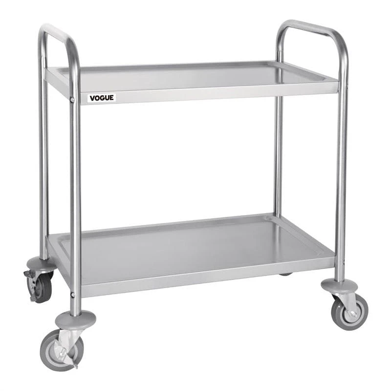 Langlebige Edelstahlservierwagen ideal für Hotels, Restaurants und andere Institutionen, in denen Hygiene und Gesundheit im Vordergrund stehen. Leicht zu manövrieren mit Handläufen an beiden Enden. Max. Belastbarkeit 128kg.