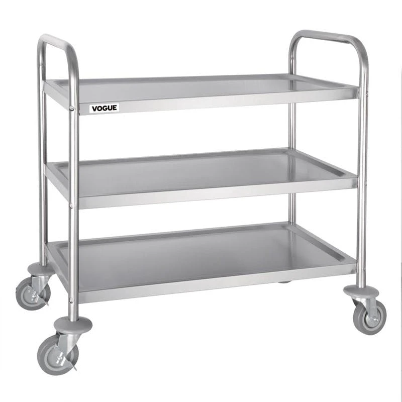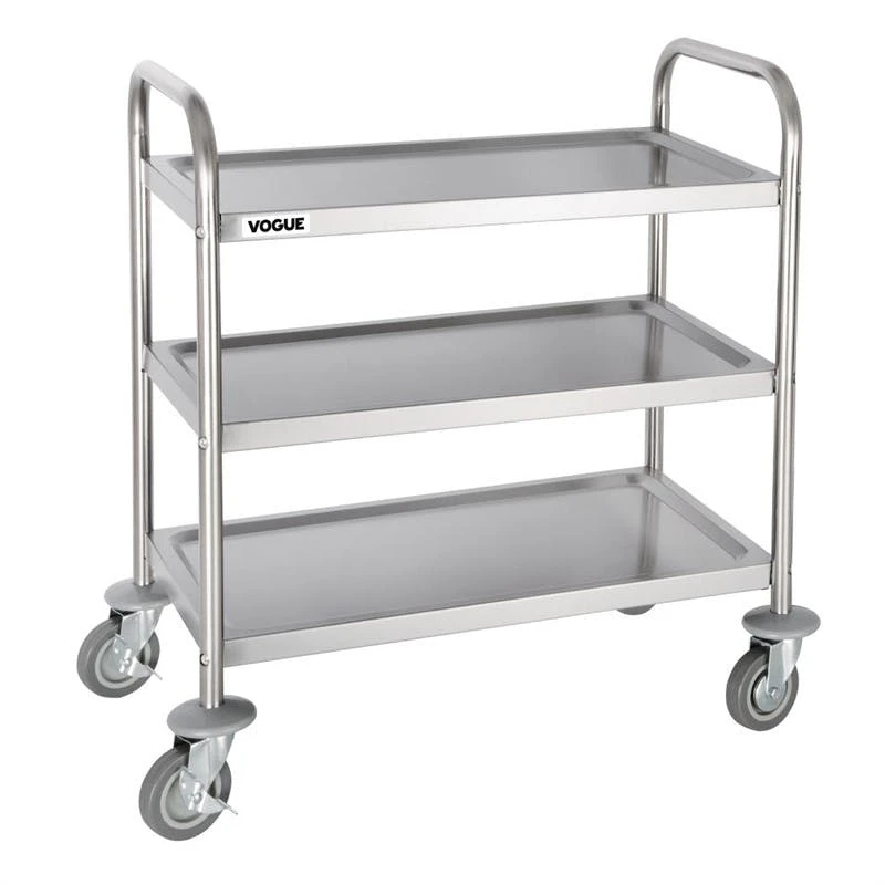Langlebige Edelstahlservierwagen ideal für Hotels, Restaurants und Institutionen, in denen Hygiene und Gesundheit im Vordergrund steht. Leicht zu manövrieren mit Handläufen an beiden Enden. Ladekapazität 128kg.
