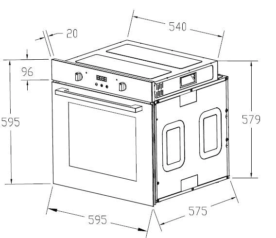 Einbaumaße Ofen H x B x T in cm: 59,50 x 59,50 x 59,25